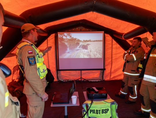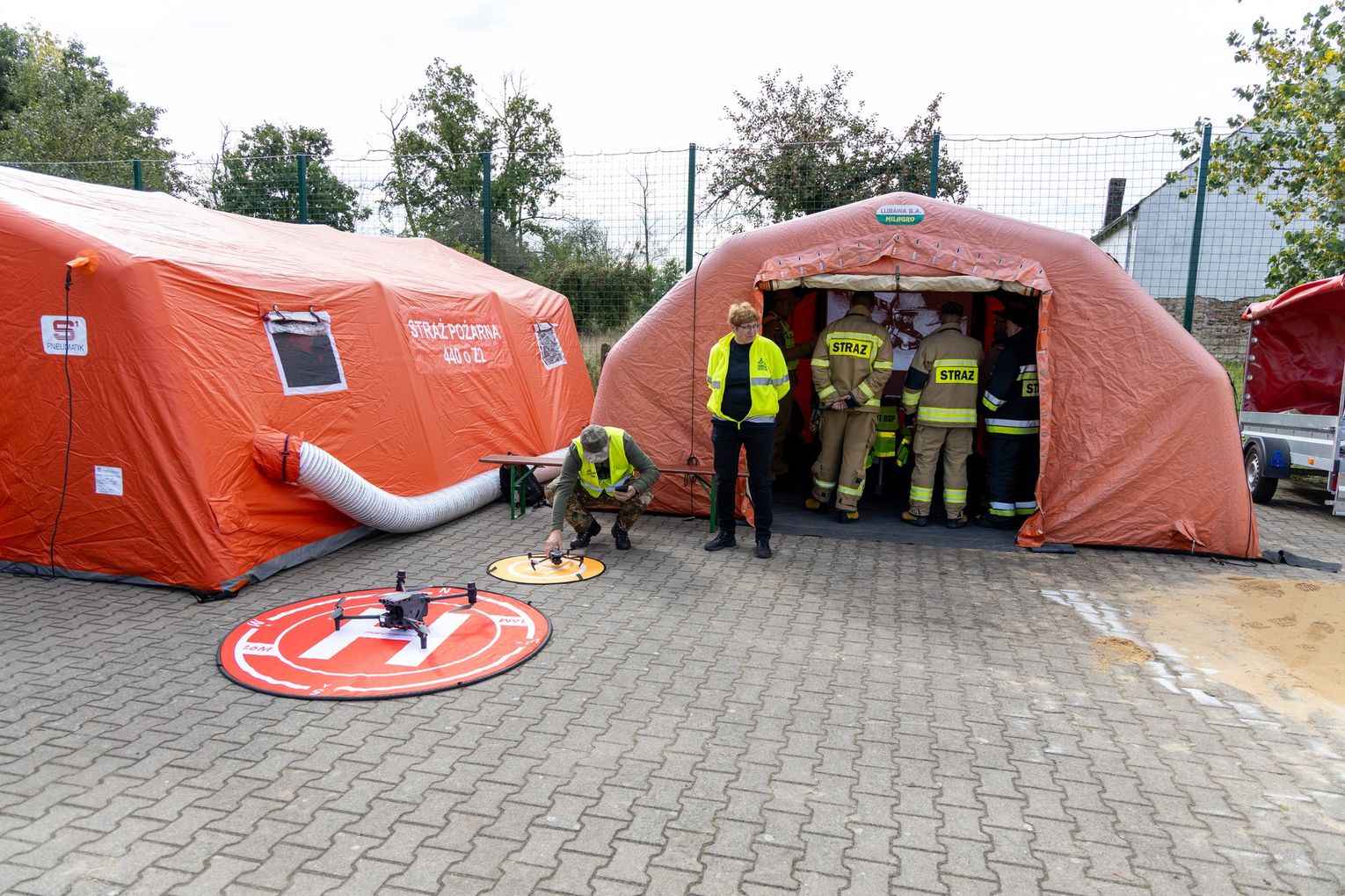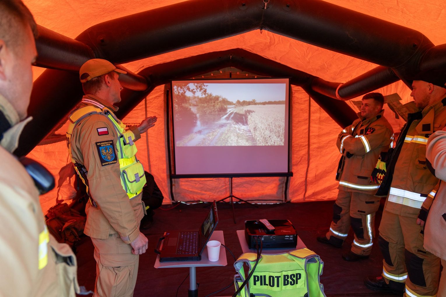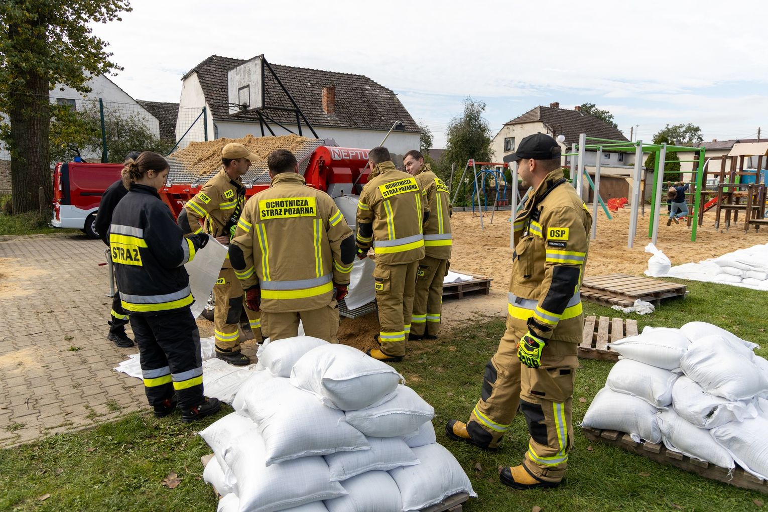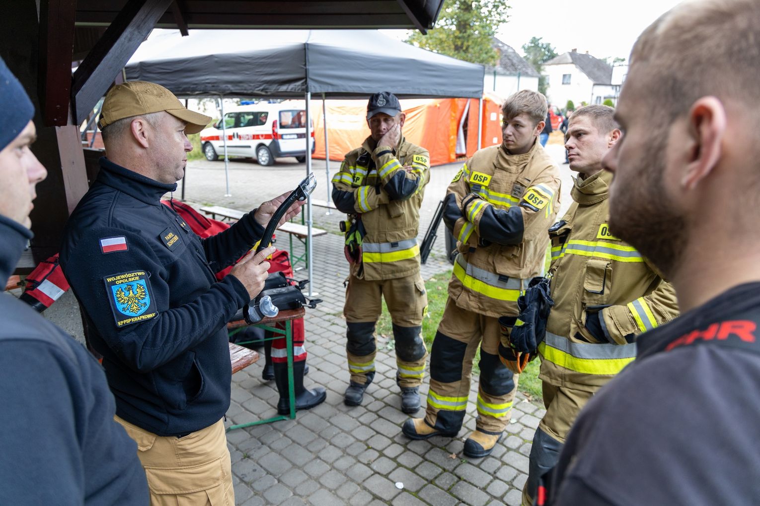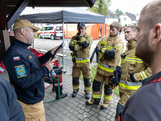 Ale prawdziwe działania przyszły dopiero w Łowkowicach. Tu, nieopodal wałów nad Osobłogą, strażacy zademonstrowali, jak w praktyce wygląda walka z powodzią: budowa i zabezpieczanie wałów, organizacja ewakuacji, a przede wszystkim – koordynacja wielu służb, które muszą działać jak jeden organizm.