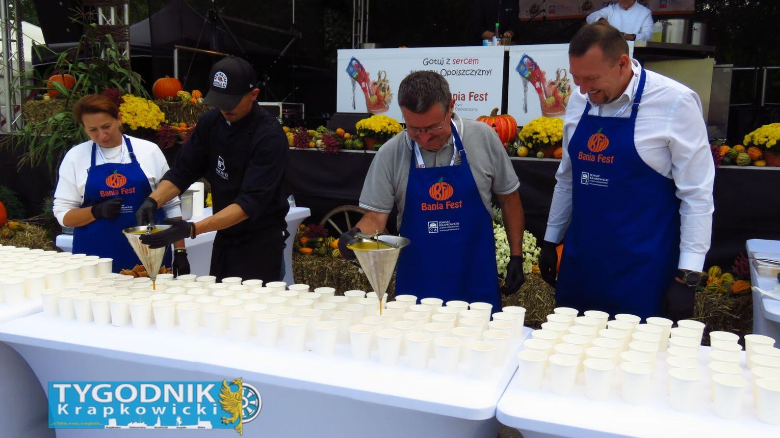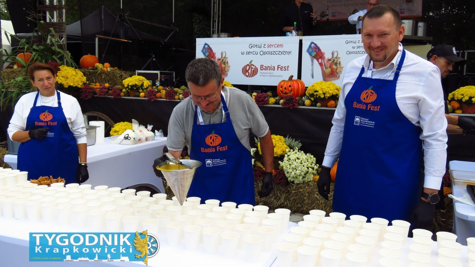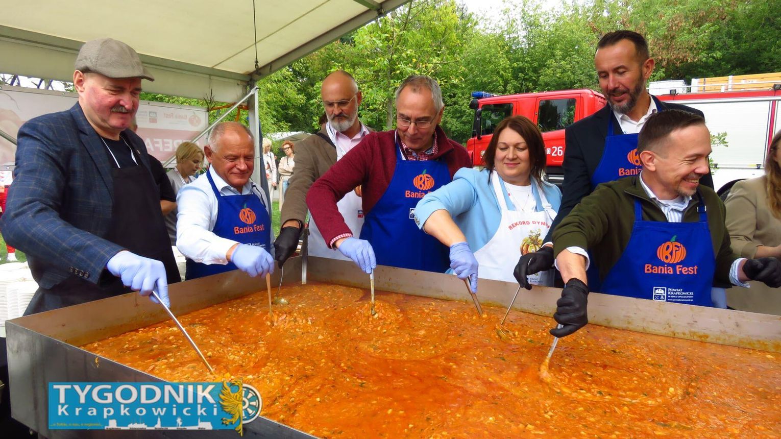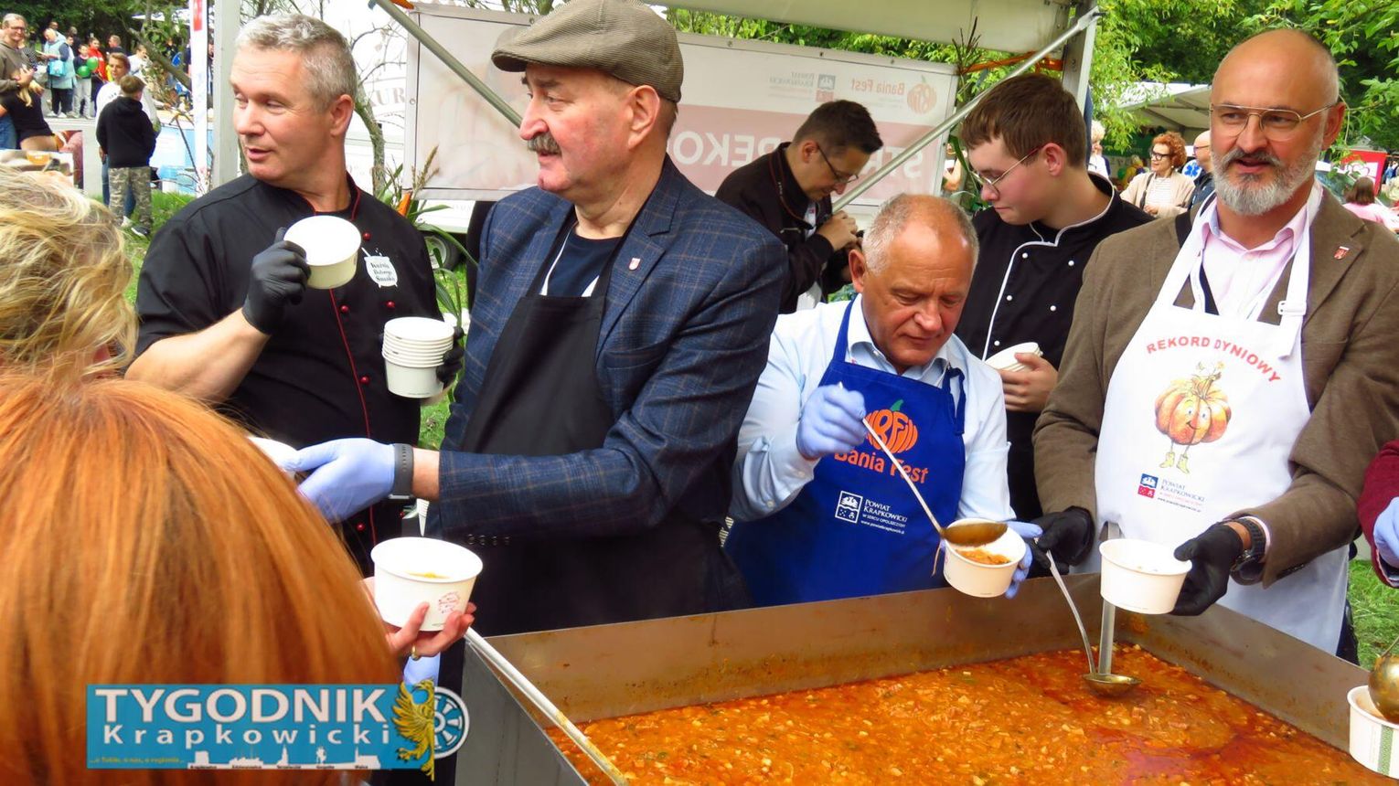 Jednak prawdziwy rekord padł gdzie indziej. Organizatorzy przygotowali największą porcję bigosu z dynią w Polsce – aż 275 kilogramów tej wyjątkowej potrawy. Dzięki temu powiat krapkowicki zapisał się w księdze kulinarnych rekordów kraju. Bigos rozdawali mieszkańcom i gościom samorządowcy, częstując wszystkich z uśmiechem i dyniowym entuzjazmem.