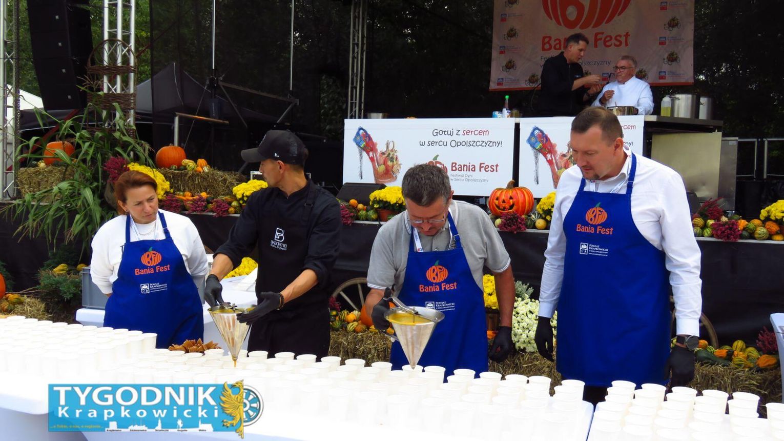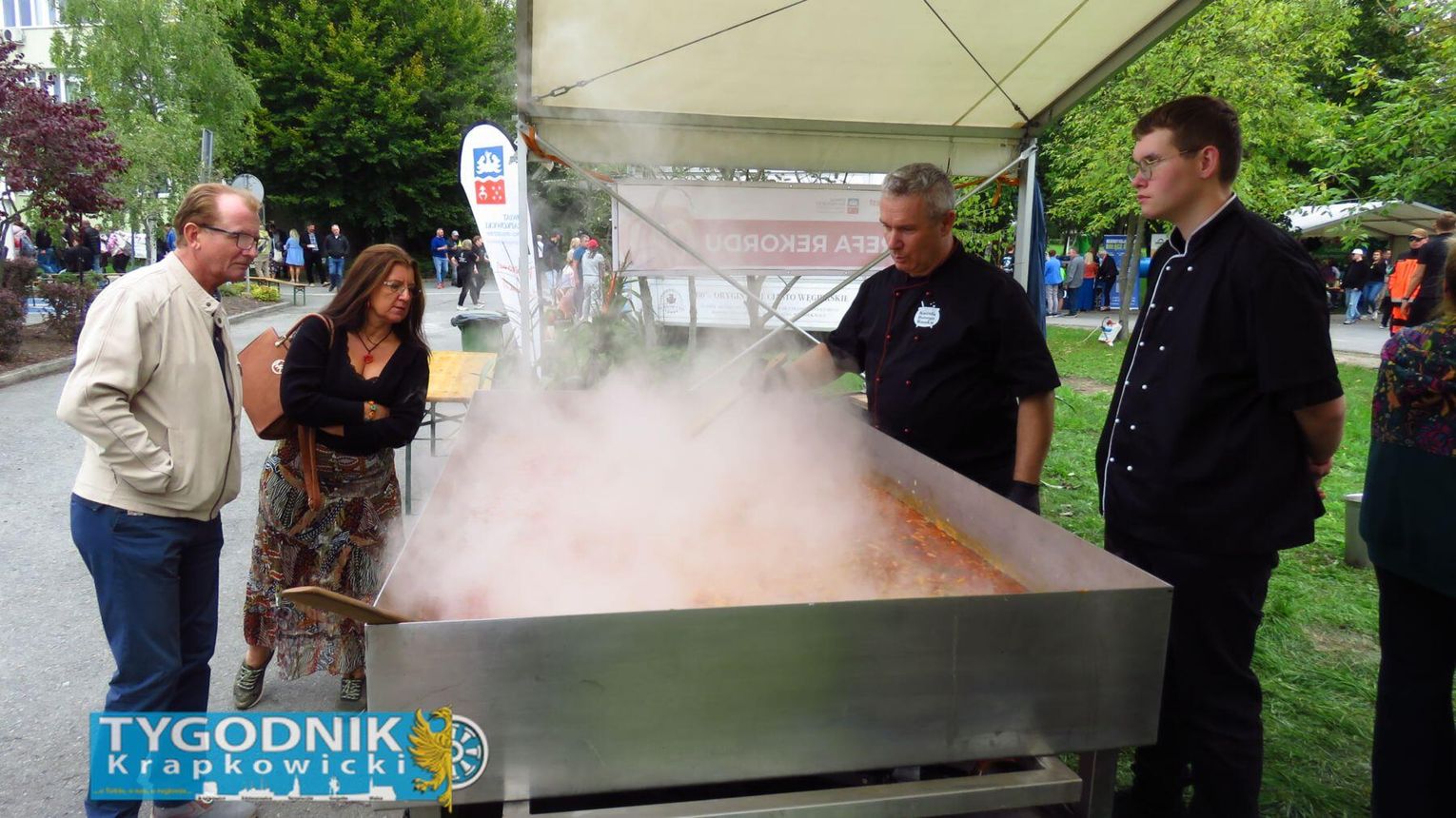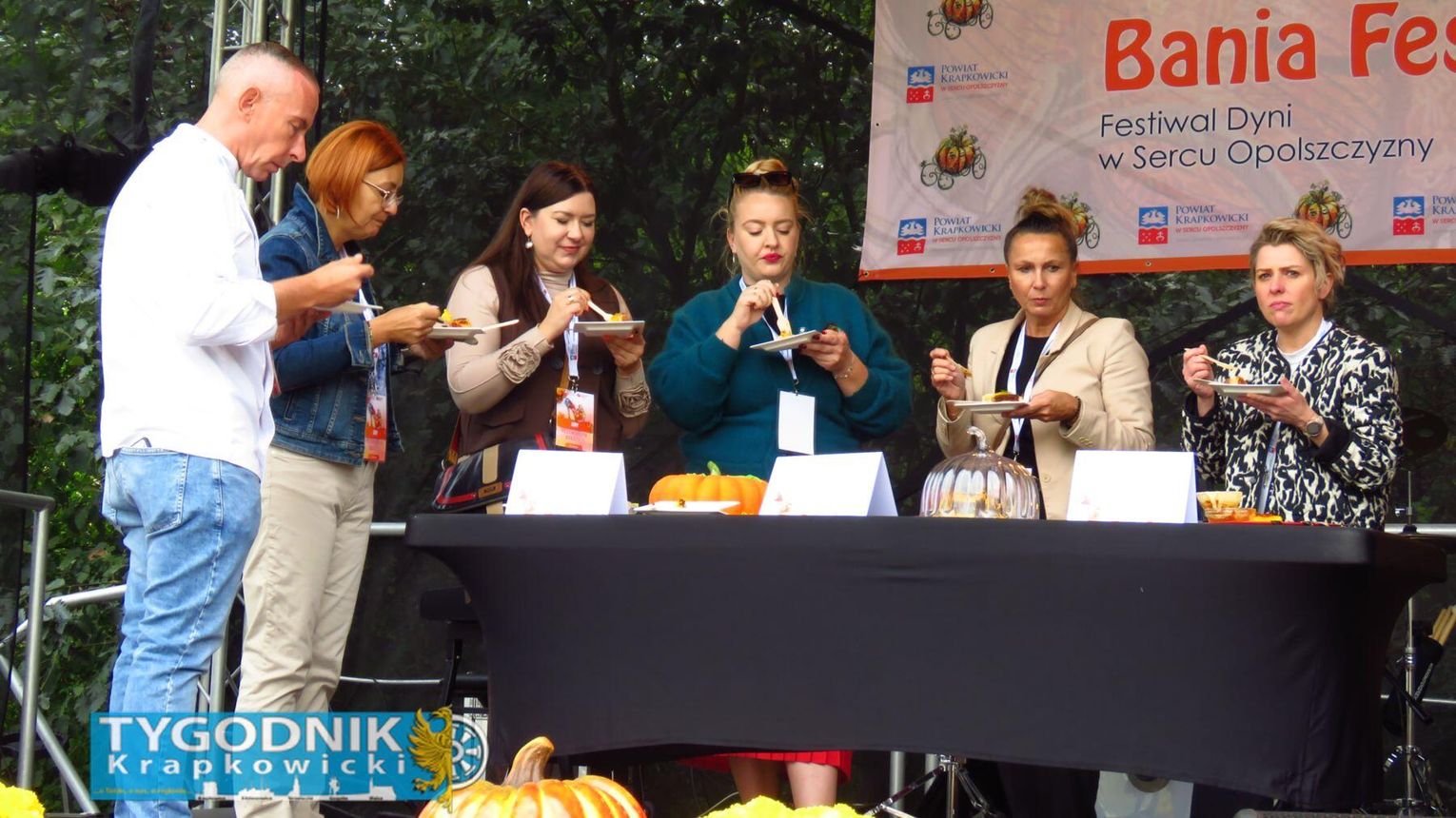 Jednak prawdziwy rekord padł gdzie indziej. Organizatorzy przygotowali największą porcję bigosu z dynią w Polsce – aż 275 kilogramów tej wyjątkowej potrawy. Dzięki temu powiat krapkowicki zapisał się w księdze kulinarnych rekordów kraju. Bigos rozdawali mieszkańcom i gościom samorządowcy, częstując wszystkich z uśmiechem i dyniowym entuzjazmem.
