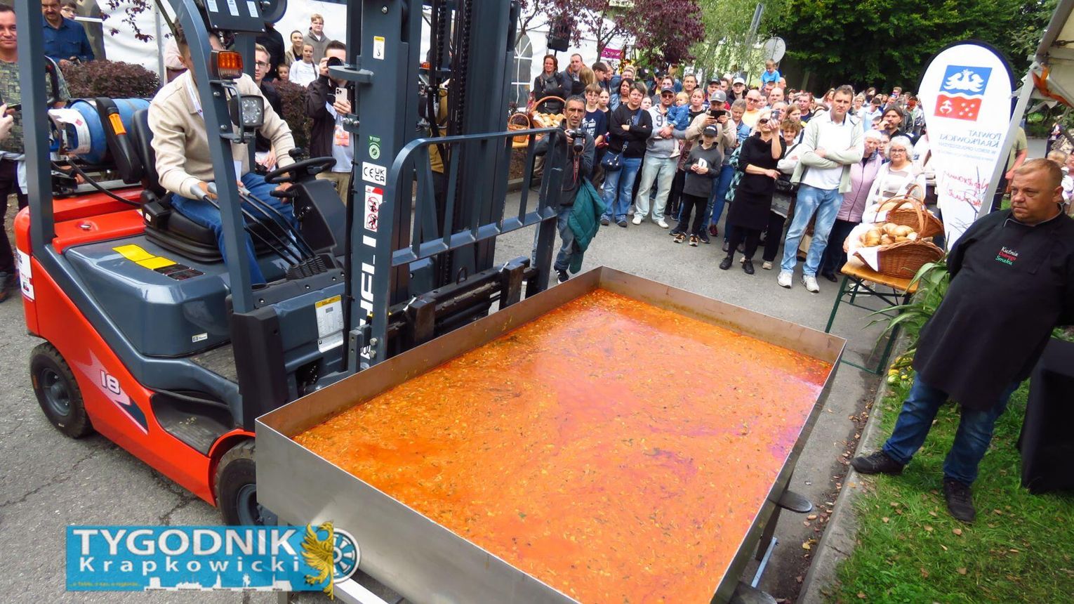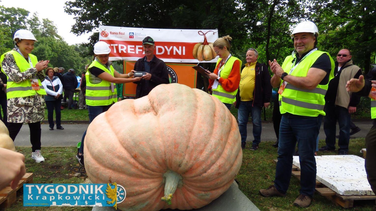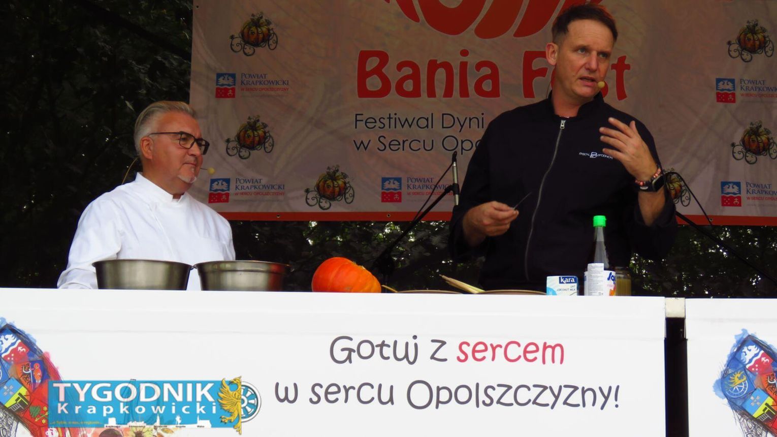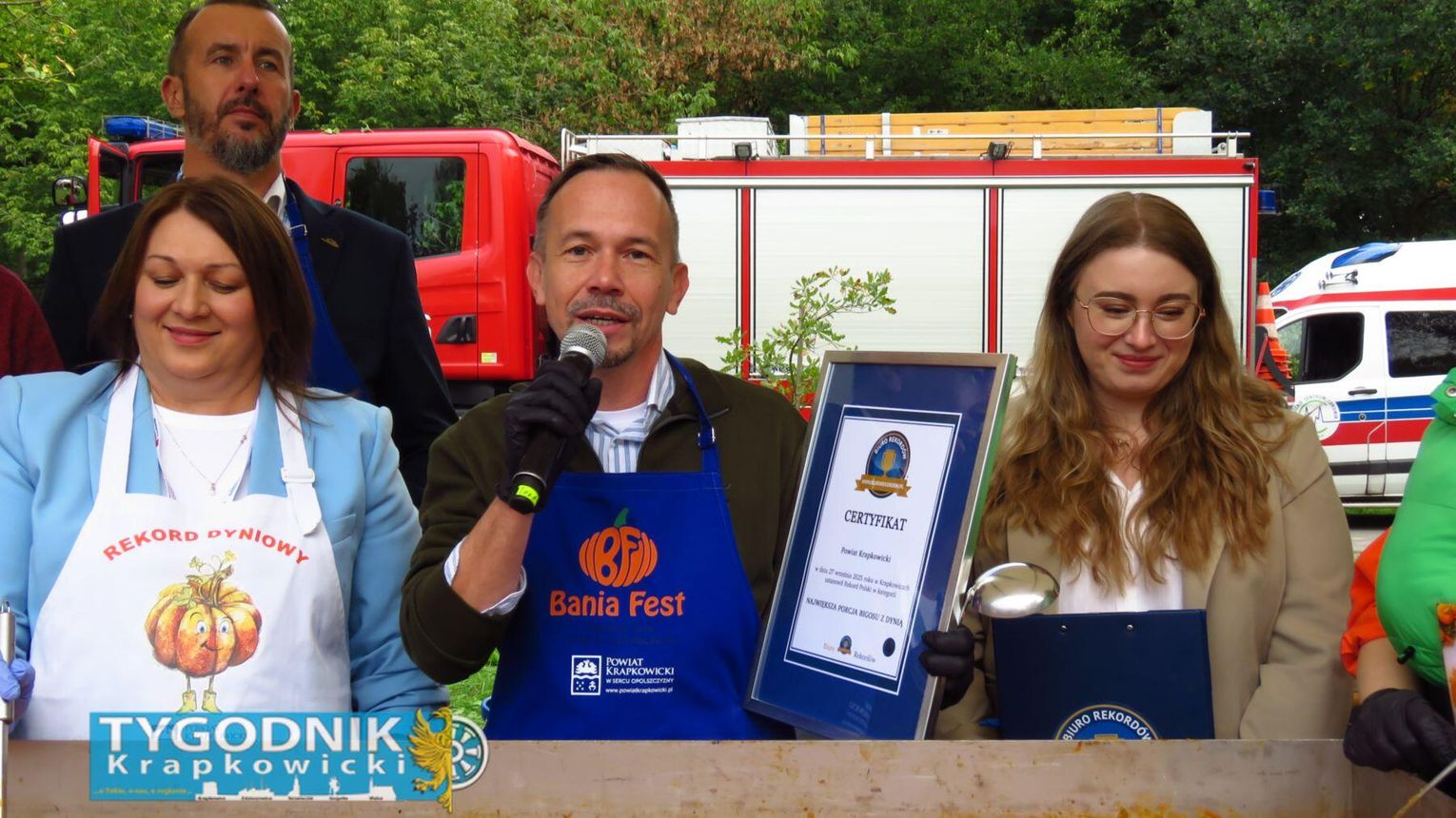 Jednak prawdziwy rekord padł gdzie indziej. Organizatorzy przygotowali największą porcję bigosu z dynią w Polsce – aż 275 kilogramów tej wyjątkowej potrawy. Dzięki temu powiat krapkowicki zapisał się w księdze kulinarnych rekordów kraju. Bigos rozdawali mieszkańcom i gościom samorządowcy, częstując wszystkich z uśmiechem i dyniowym entuzjazmem.