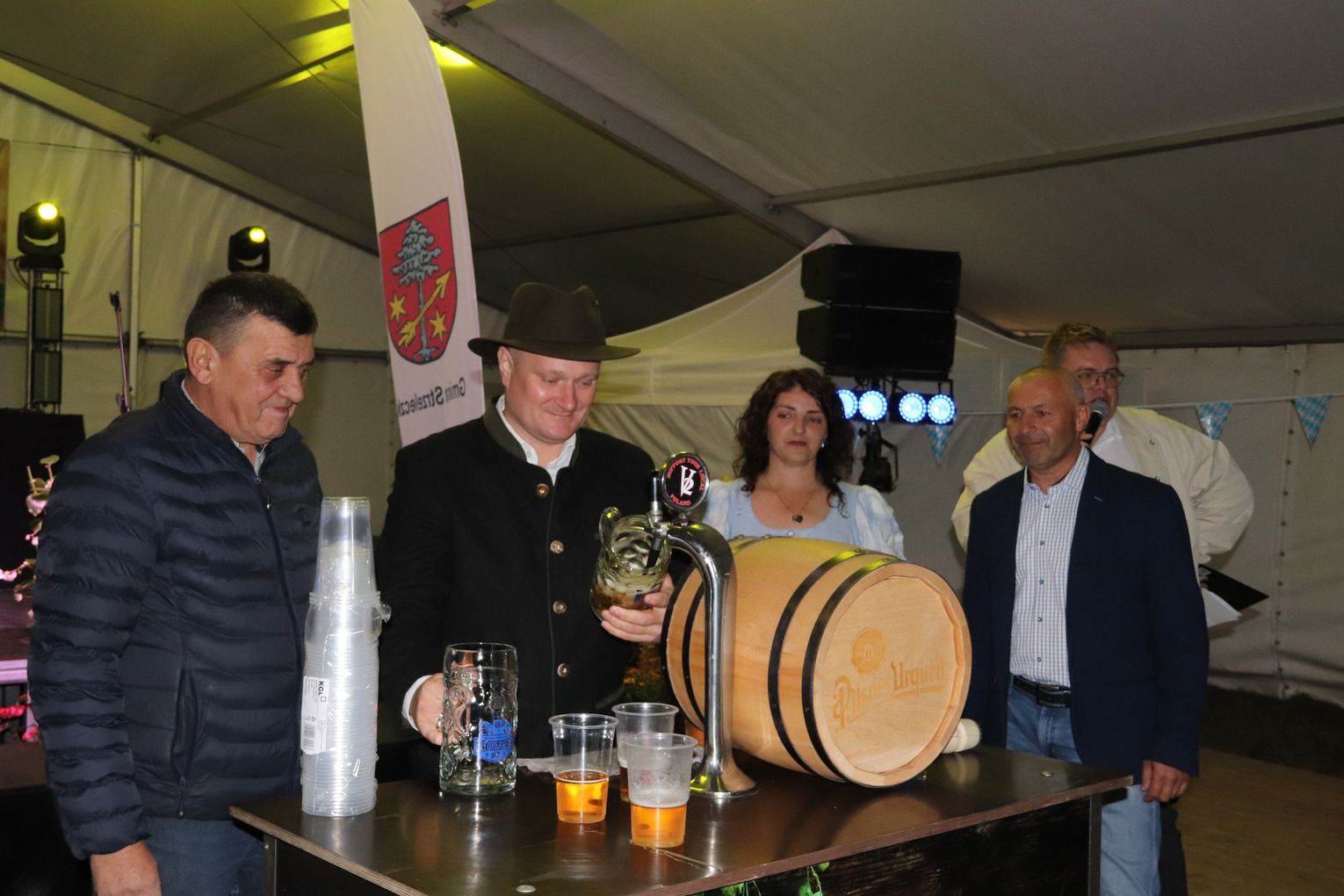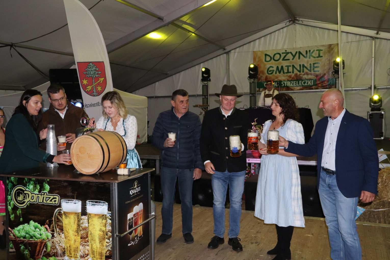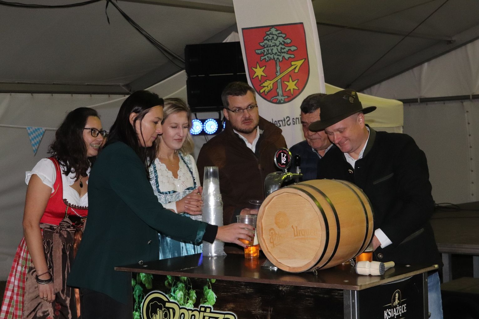 W sobotni wieczór 4 października oficjalnie wystartowało gminne świętowanie. Burmistrz Marek Pietruszka, przewodniczący Rady Miejskiej Włodzimierz Wolny oraz dyrektor GOK Anna Kuźnik odszpuntowali beczkę piwa i tym samym dali znak: Oktoberfest w Pisarzowicach uznajemy za otwarty. DJ Dragon zrobił swoje – muzyka podkręcona, ludzie na parkiecie, kufle pełne, a bawarskie stroje pojawiły się w namiocie biesiadnym.