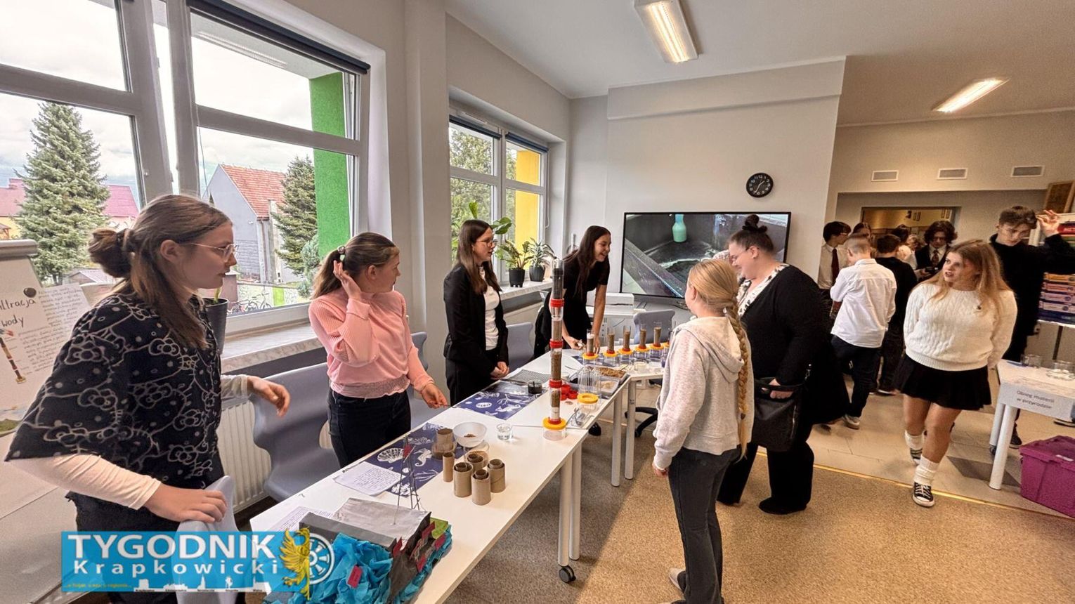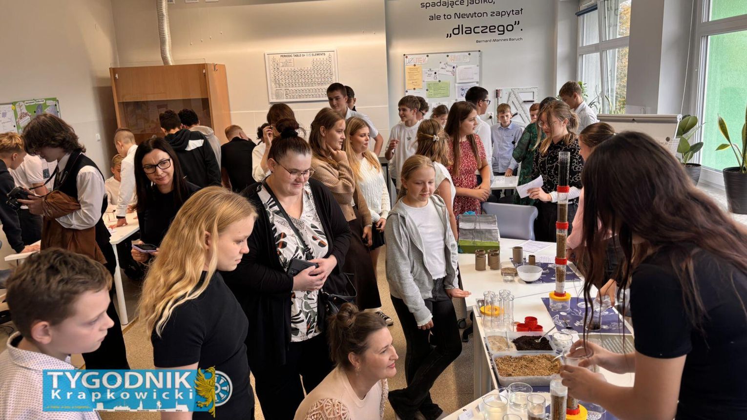 Podczas zwiedzania przygotowanych przez uczniów stolików eksperymentalnych goście mogli zobaczyć m.in. doświadczenia związane z odnawialnymi źródłami energii, recyklingiem oraz ochroną zasobów naturalnych. Młodzi odkrywcy chętnie dzielili się wiedzą i pokazywali, jak nauka może być ciekawa i inspirująca.