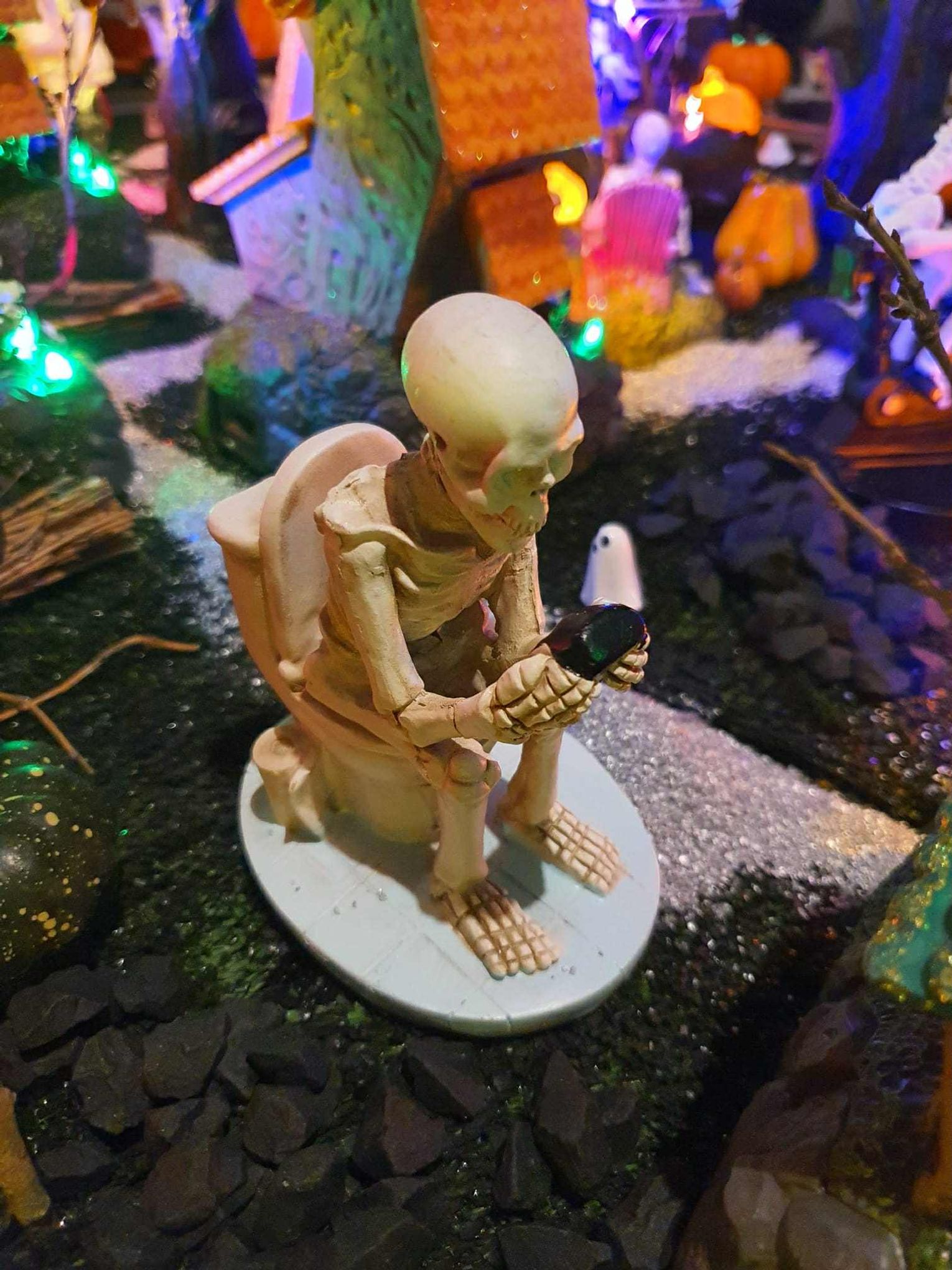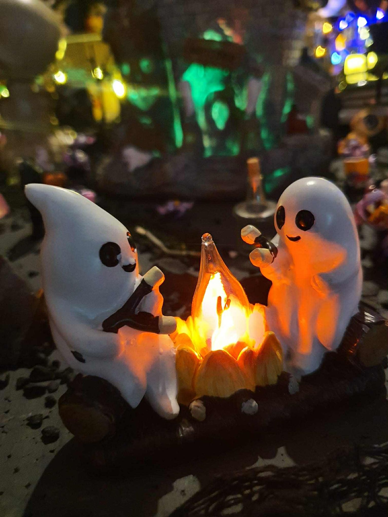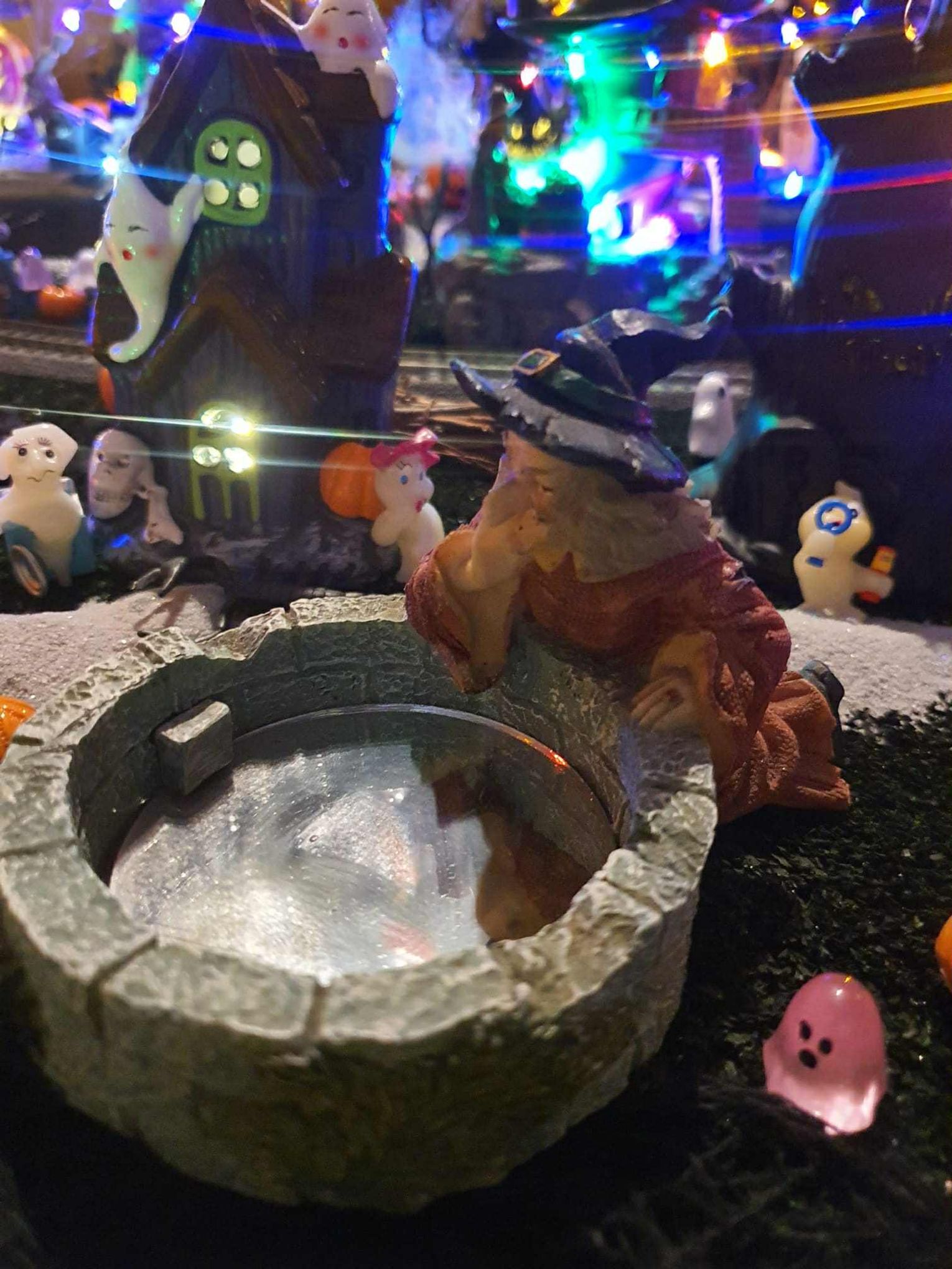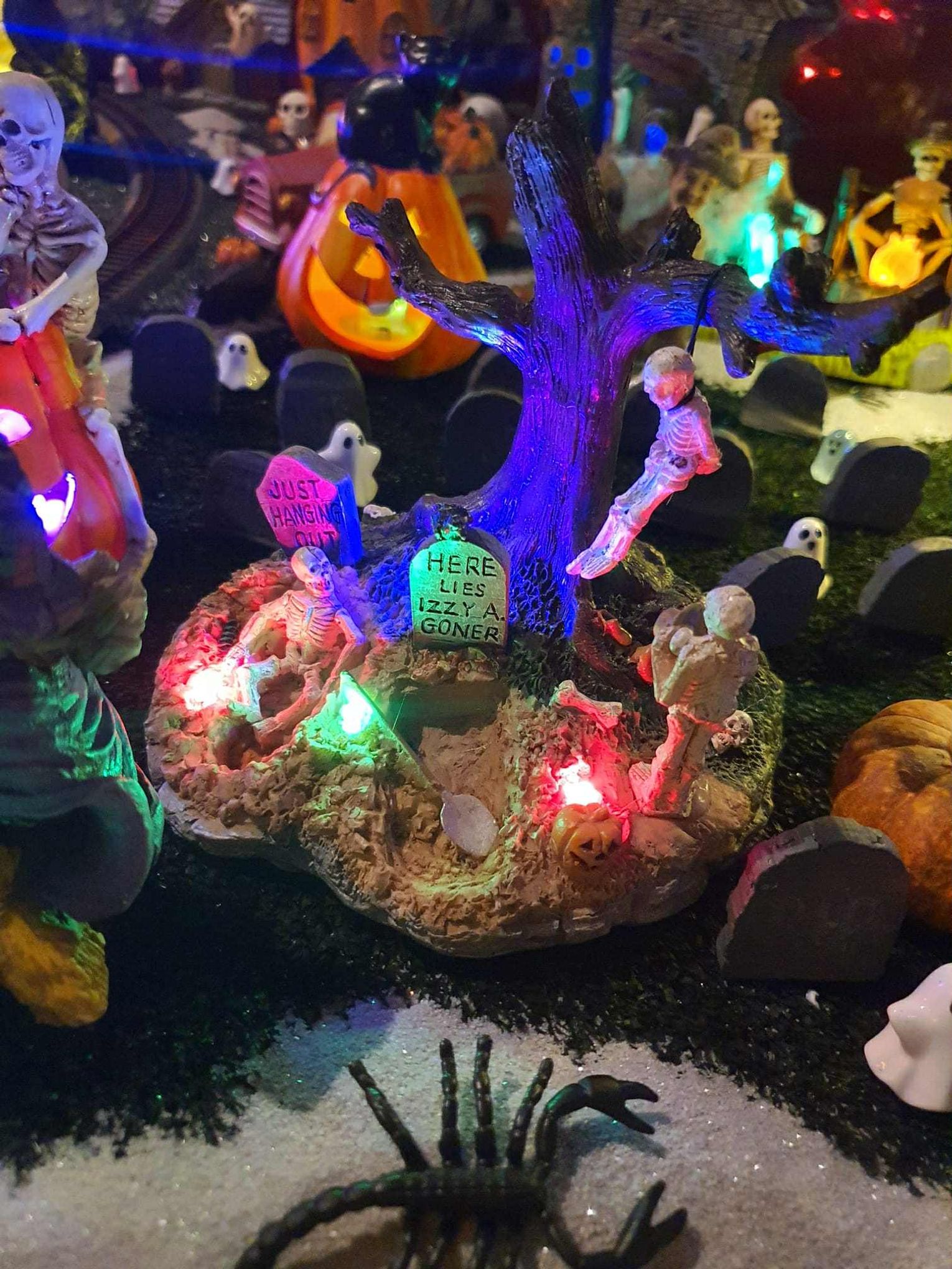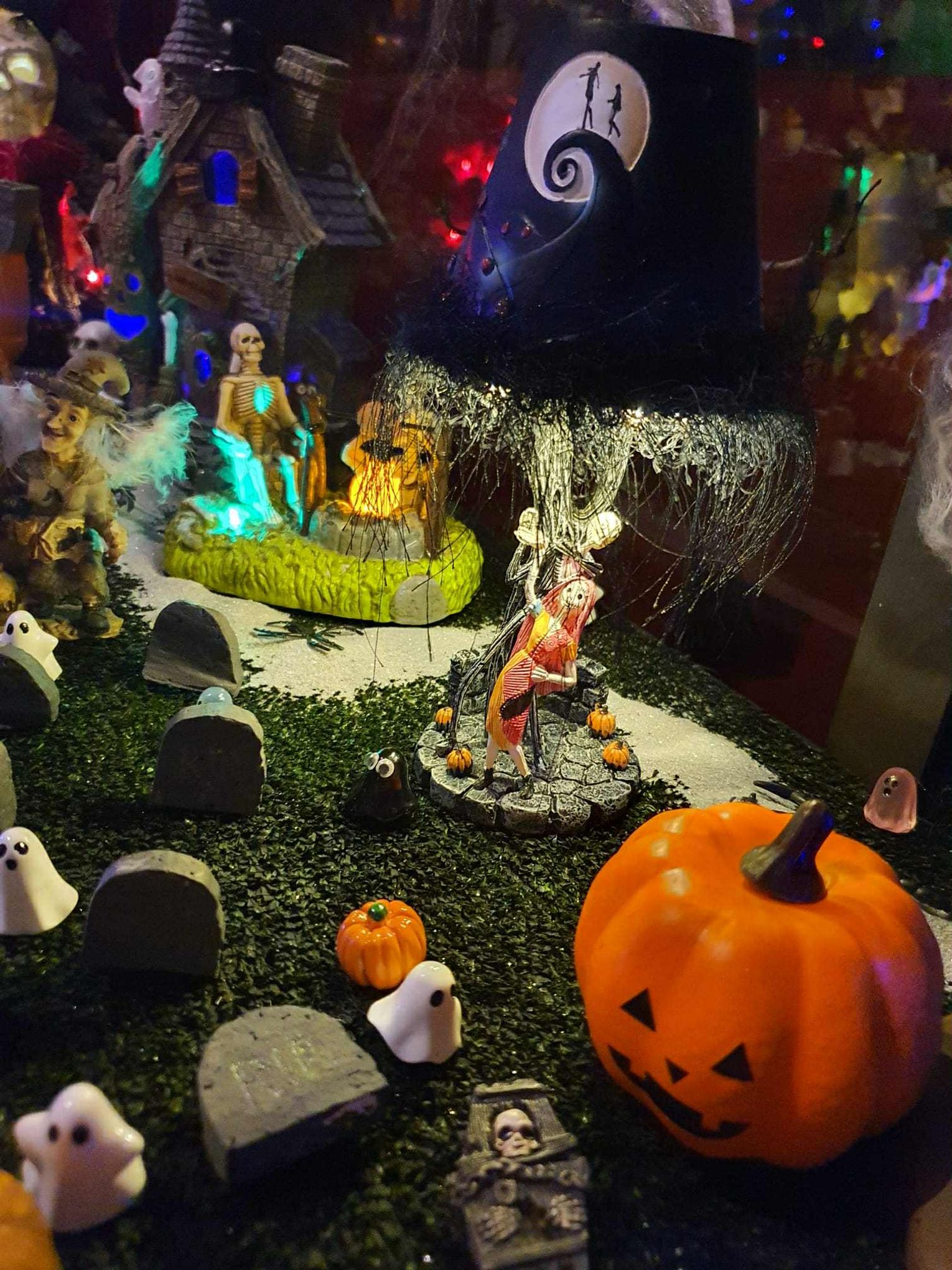 Na makiecie tętni życie: świecące duszki, ruchome wampiry, a między nimi – miniaturowa lokomotywa z wagonami pełnymi pomarańczowych dyń. To widowisko światła, ruchu i pomysłowości, które przyciąga całe rodziny.