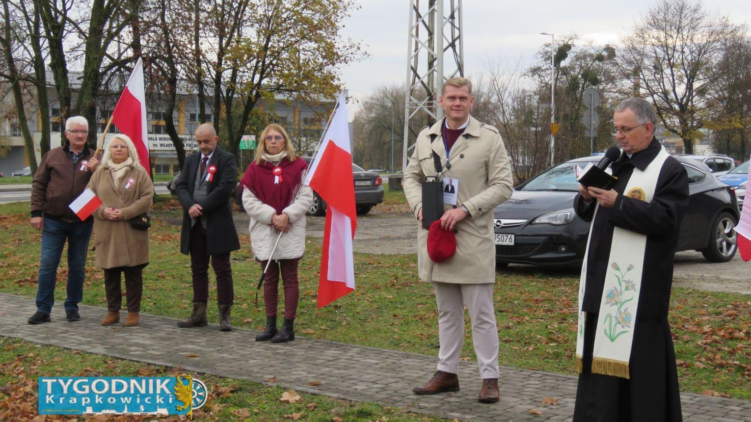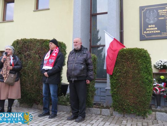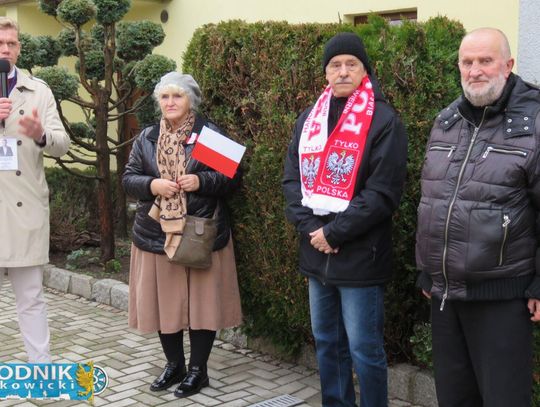 Pod kościołem odbyły się krótkie przemówienia okolicznościowe oraz złożenie kwiatów pod tablicą poświęconą żołnierzom wyklętym, walczącym z reżimem komunistycznym o wolną i niepodległą Polskę. W wydarzeniu udział wzięła również radna miejska Maria Karwecka.