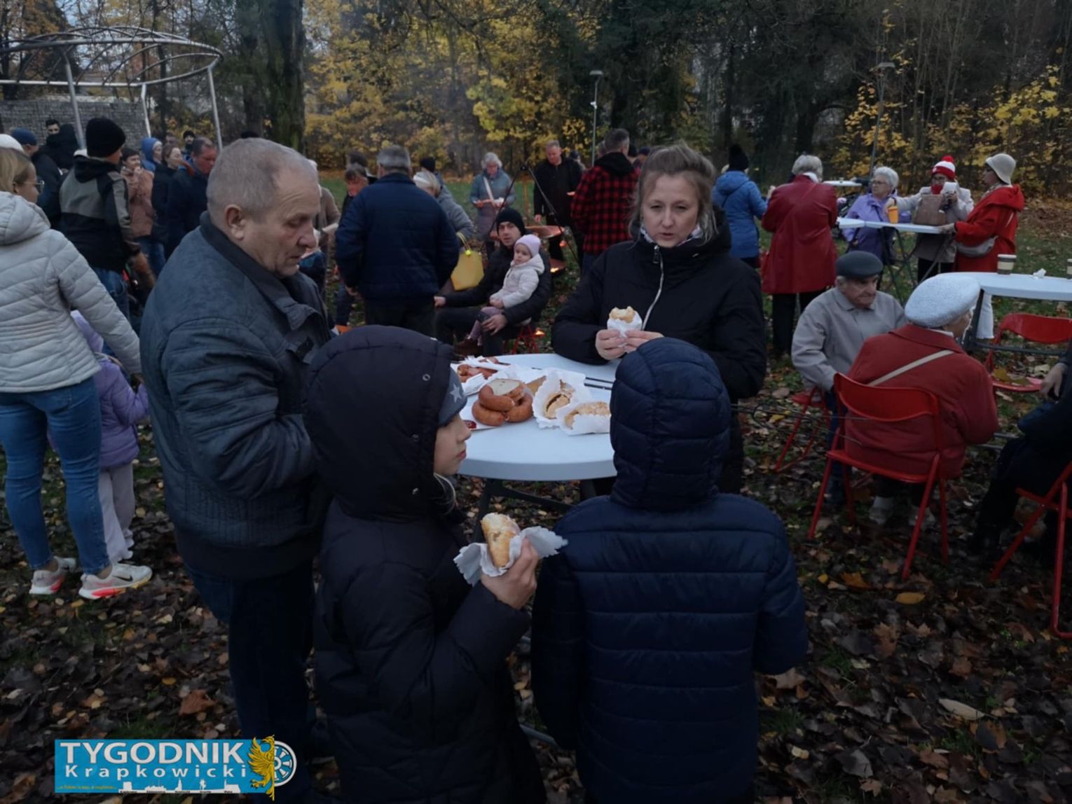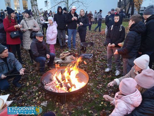 Po zakończeniu marszu uczestnicy dotarli do Parku Magnolia, gdzie na wszystkich czekał słodki poczęstunek – tradycyjne rogale marcińskie, gorąca kawa i herbata oraz ognisko z pieczonymi kiełbaskami. Wspólne biesiadowanie przy ogniu sprzyjało rozmowom i rodzinnemu spędzaniu czasu.