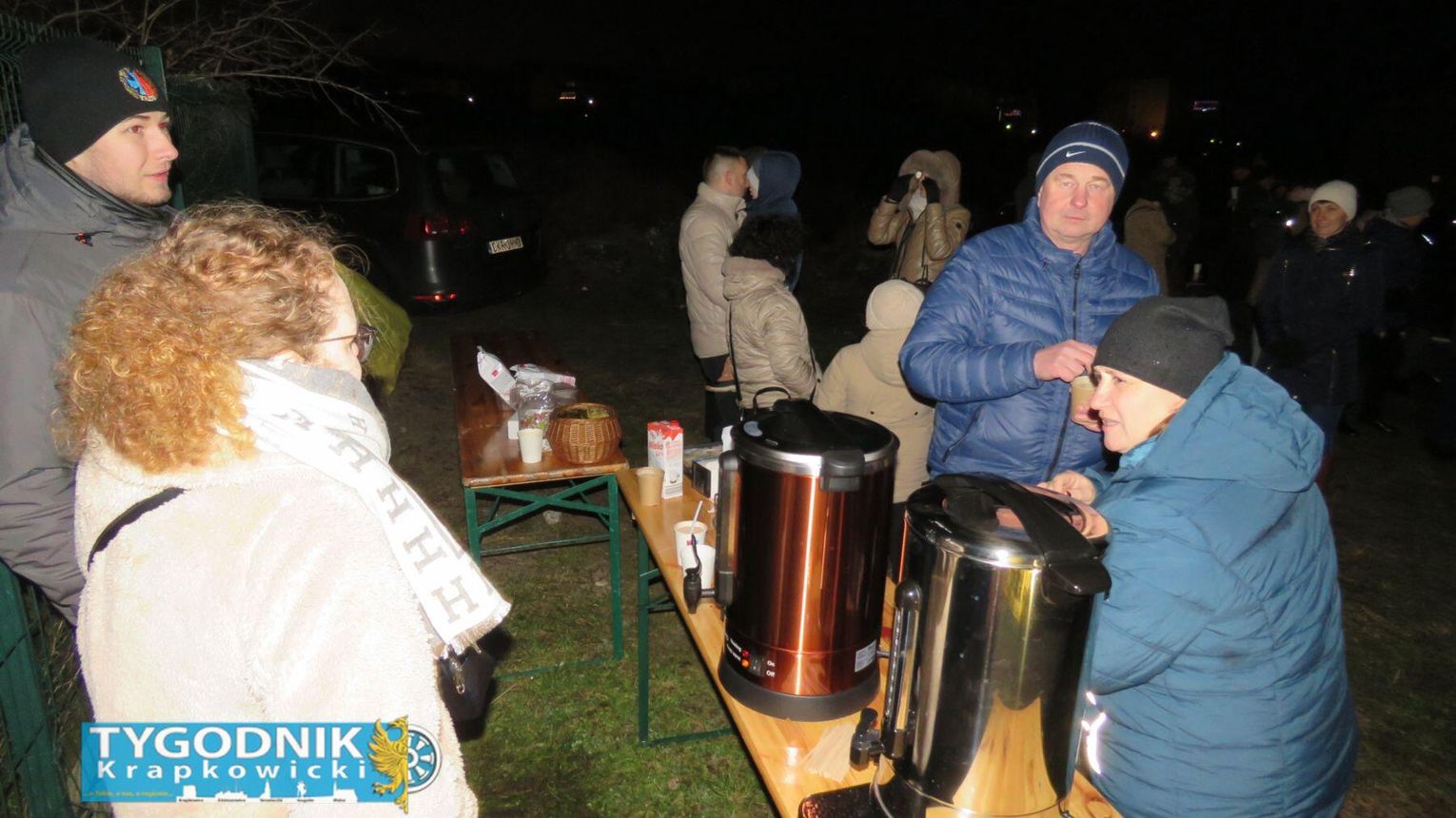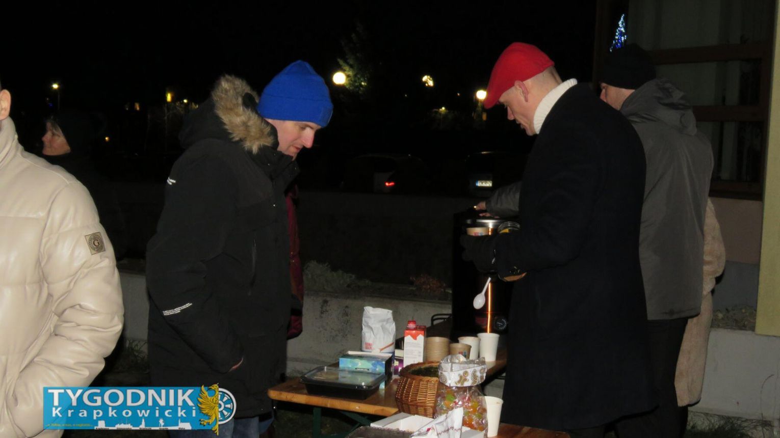 Organizatorzy zadbali także o kulinarną stronę wydarzenia. Na uczestników czekały ciepłe napoje – kawa, herbata, gorąca czekolada oraz grzane wino – a także domowe wypieki, w tym ciasta i świąteczny piernik. Przy ognisku łatwo było zatrzymać się na dłuższą rozmowę, wymienić życzenia i choć na chwilę zwolnić w rytmie codziennych obowiązków.