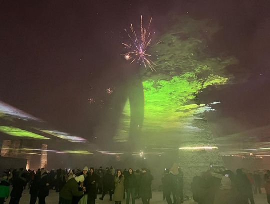 Punktualnie o północy plac rozświetlił się widowiskowym pokazem laserowym. Wapienniki stały się spektakularnym tłem dla wspólnego odliczania, a synchronizacja świateł z muzyką podkreśliła wyjątkową atmosferę rozpoczęcia Nowego Roku 2026.