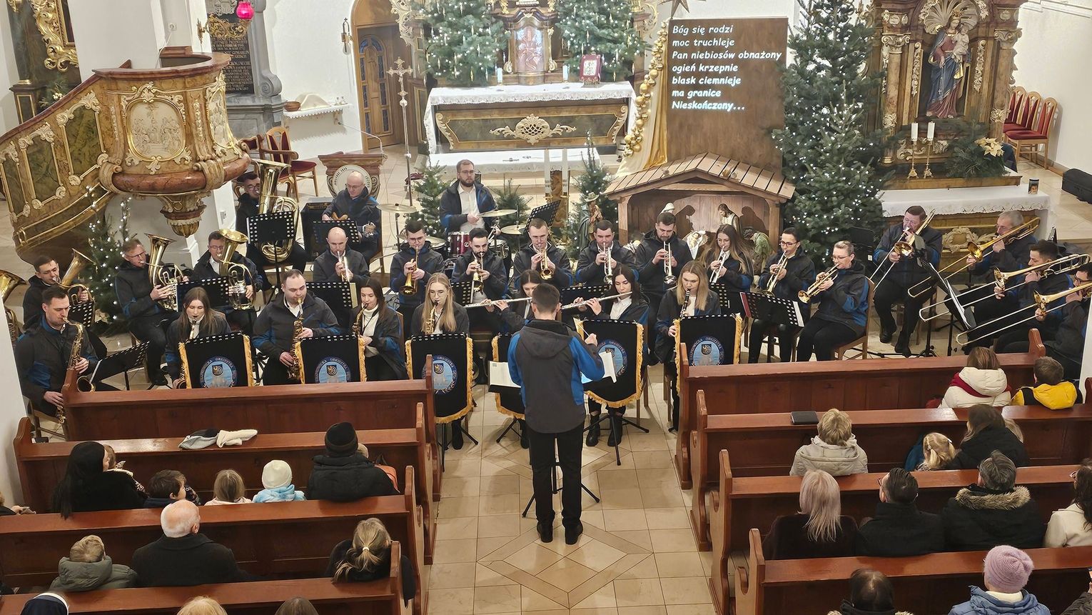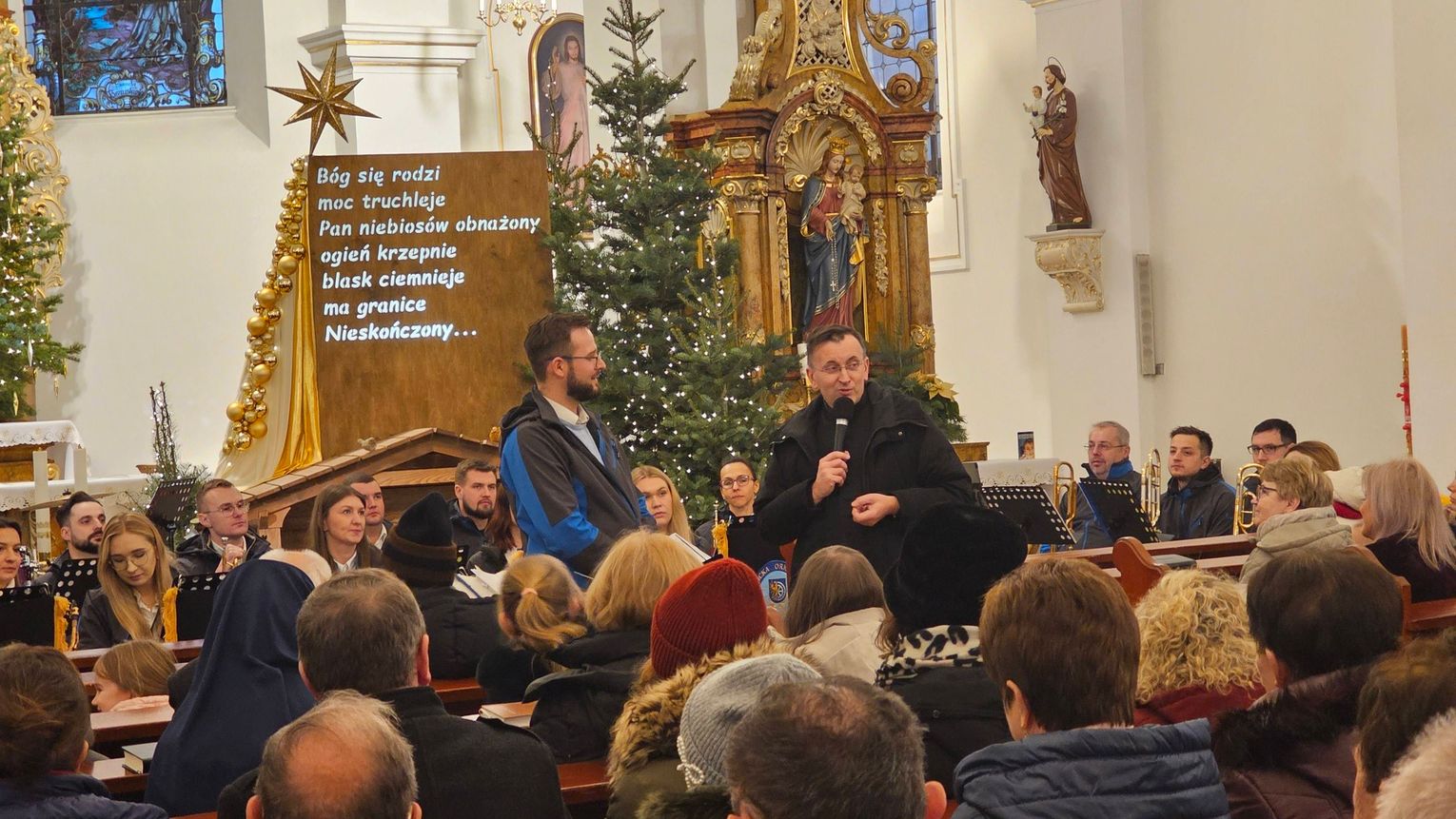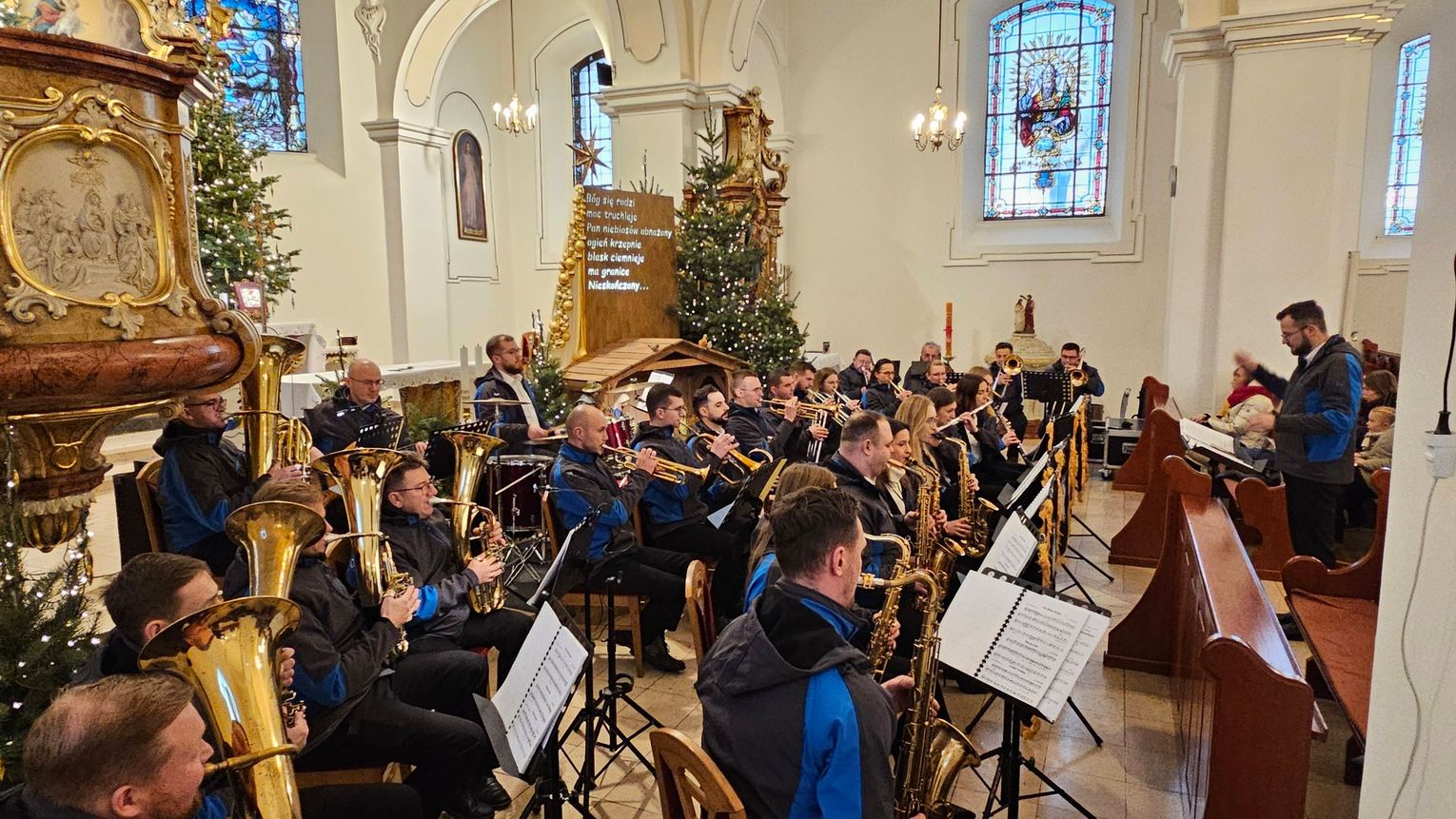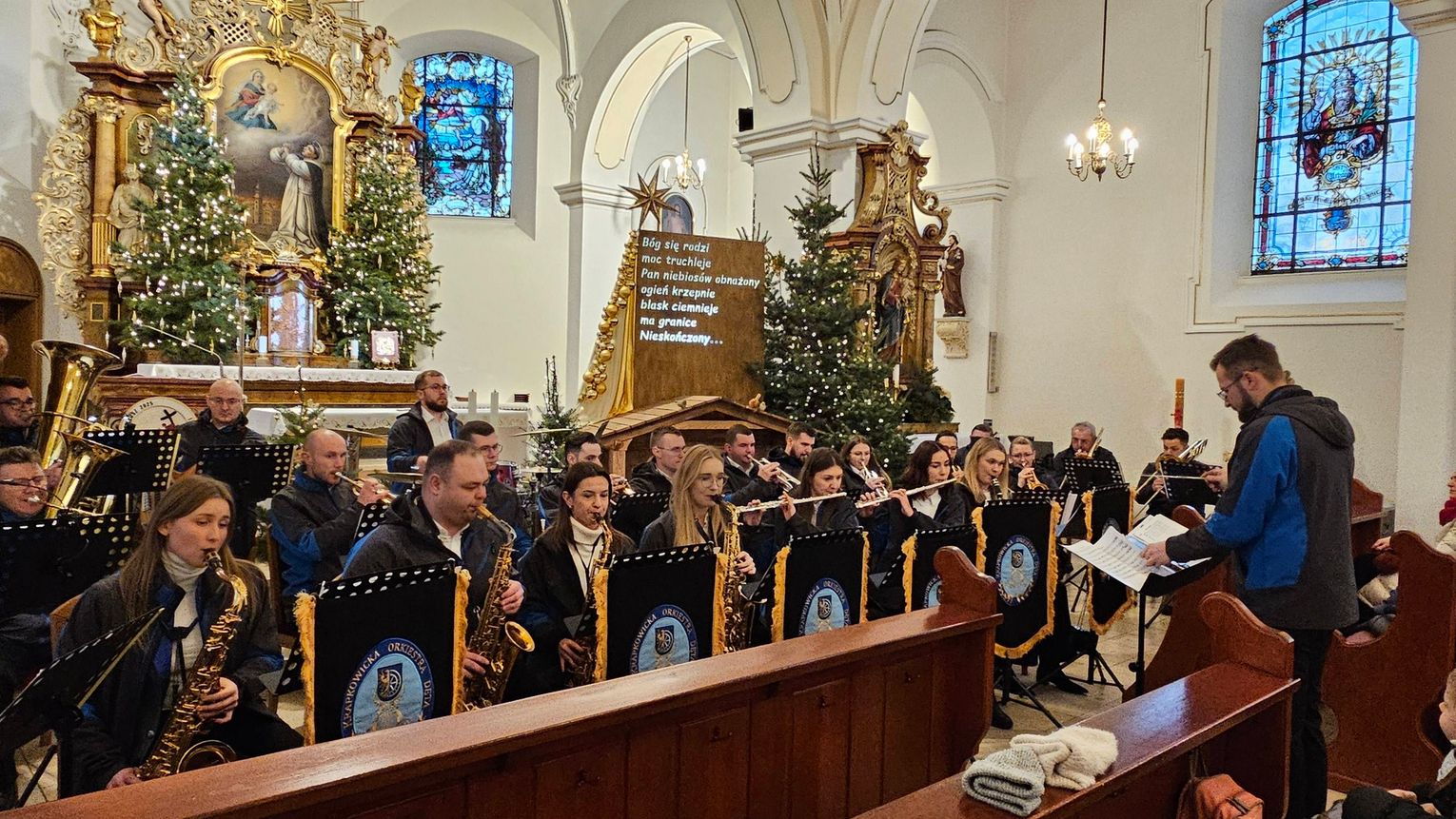 Świątynia wypełniła się wiernymi niemal do ostatniego miejsca. Zebrani z uwagą wsłuchiwali się w znane i lubiane kolędy, które w aranżacjach orkiestry nabrały nowej, nieco bardziej podniosłej i koncertowej formy. Tradycyjne melodie, tak mocno wpisane w polską kulturę i religijność, zabrzmiały pełnym, dętym brzmieniem, tworząc niezwykły klimat wspólnego przeżywania okresu bożonarodzeniowego.