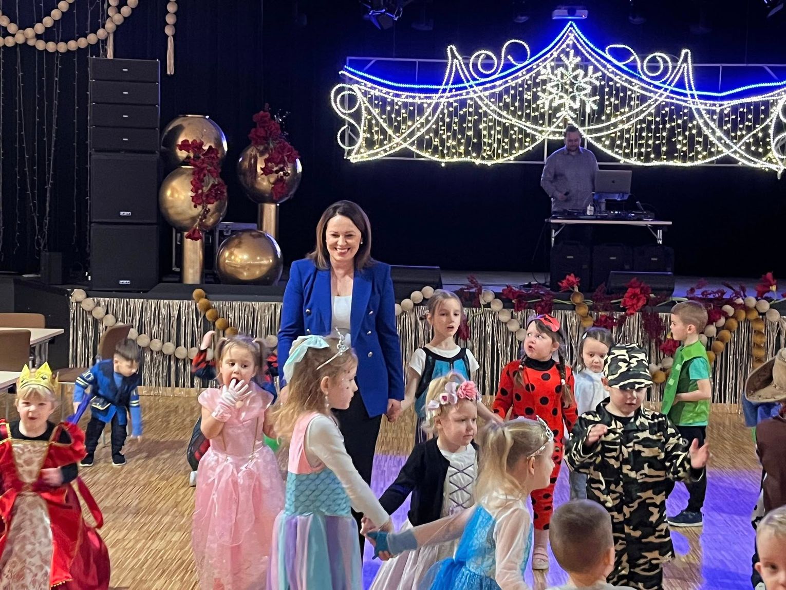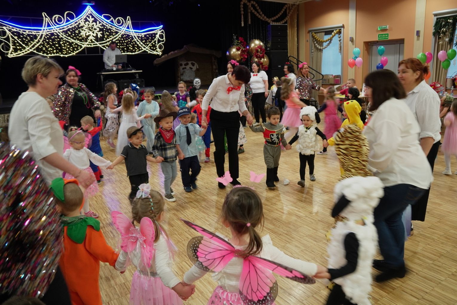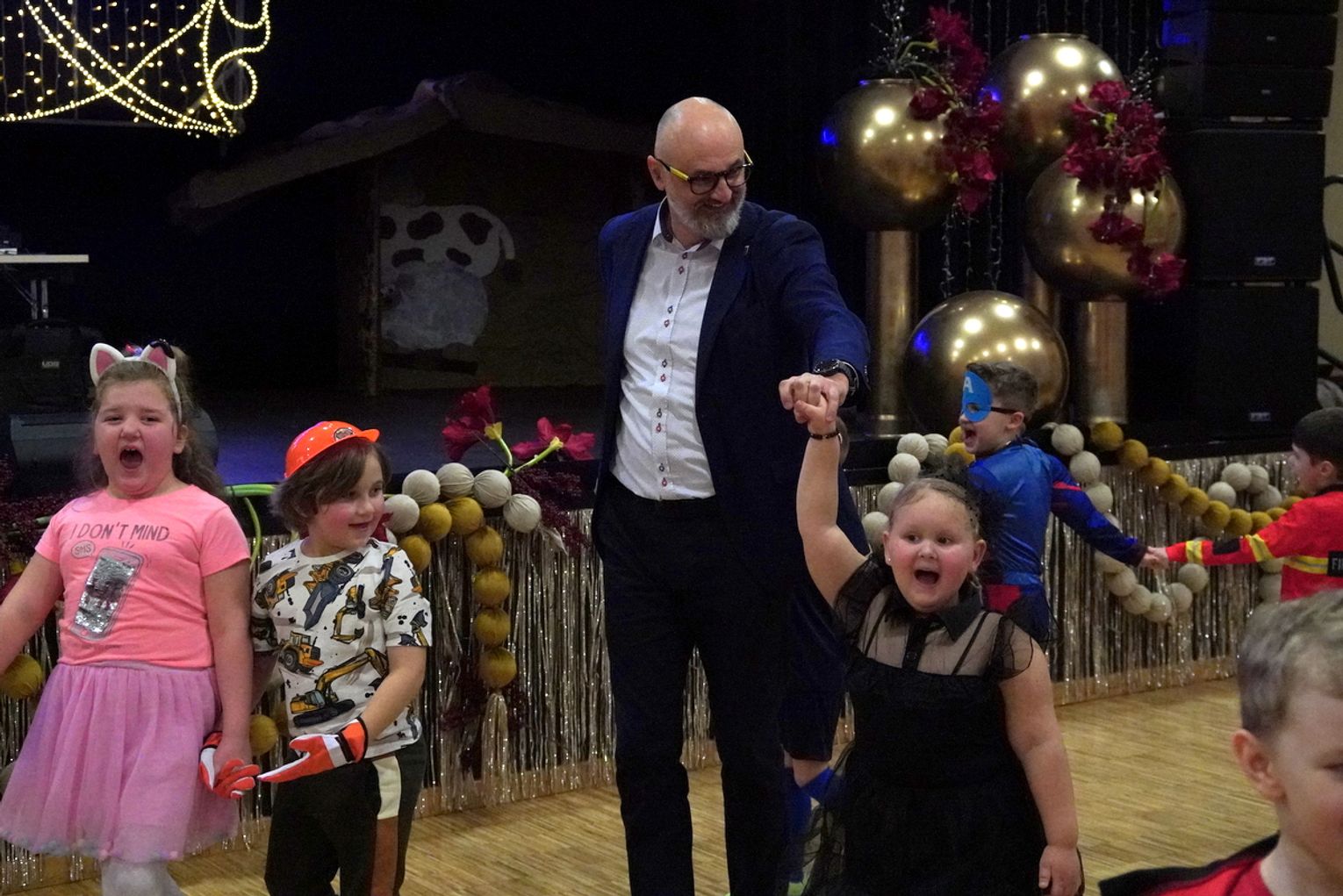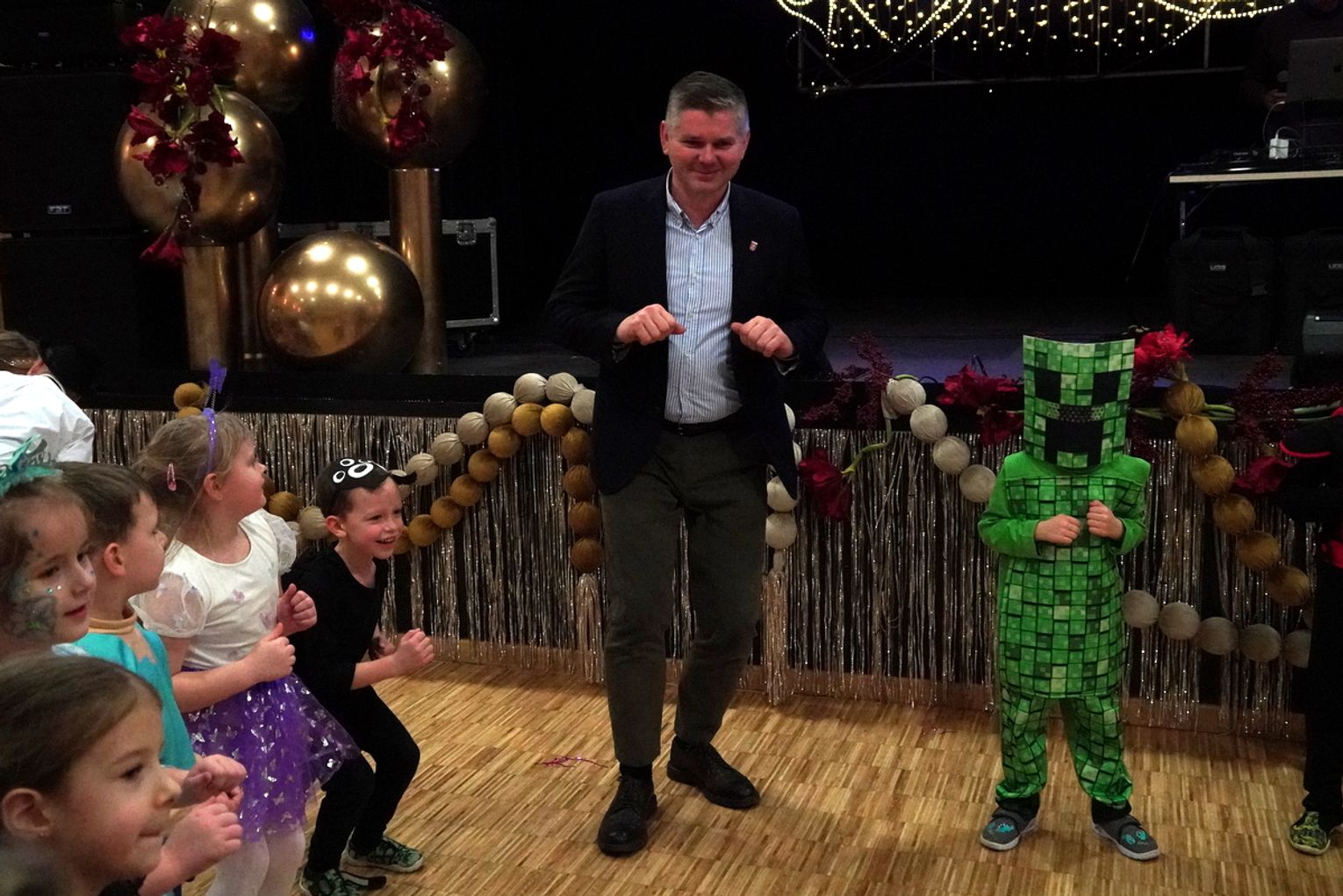 Zabawę rozpoczęły przedszkolaki z Publicznego Przedszkola nr 1 w Gogolinie oraz Oddziału Przedszkolnego w Górażdżach. Sala szybko zamieniła się w bajkową krainę pełną księżniczek, superbohaterów i wesołych zwierzątek. Do tanecznego szaleństwa dołączył wiceburmistrz Gogolina Piotr Giecewicz, który wręczył dzieciom słodkie upominki od burmistrza i chętnie zatańczył razem z najmłodszymi.