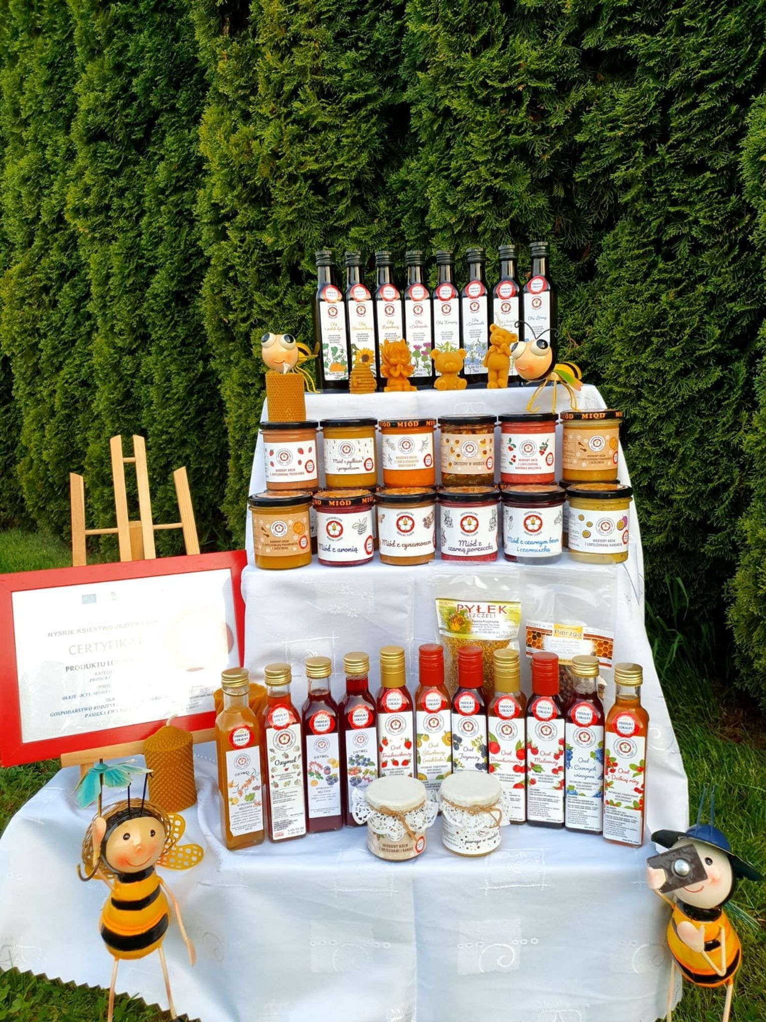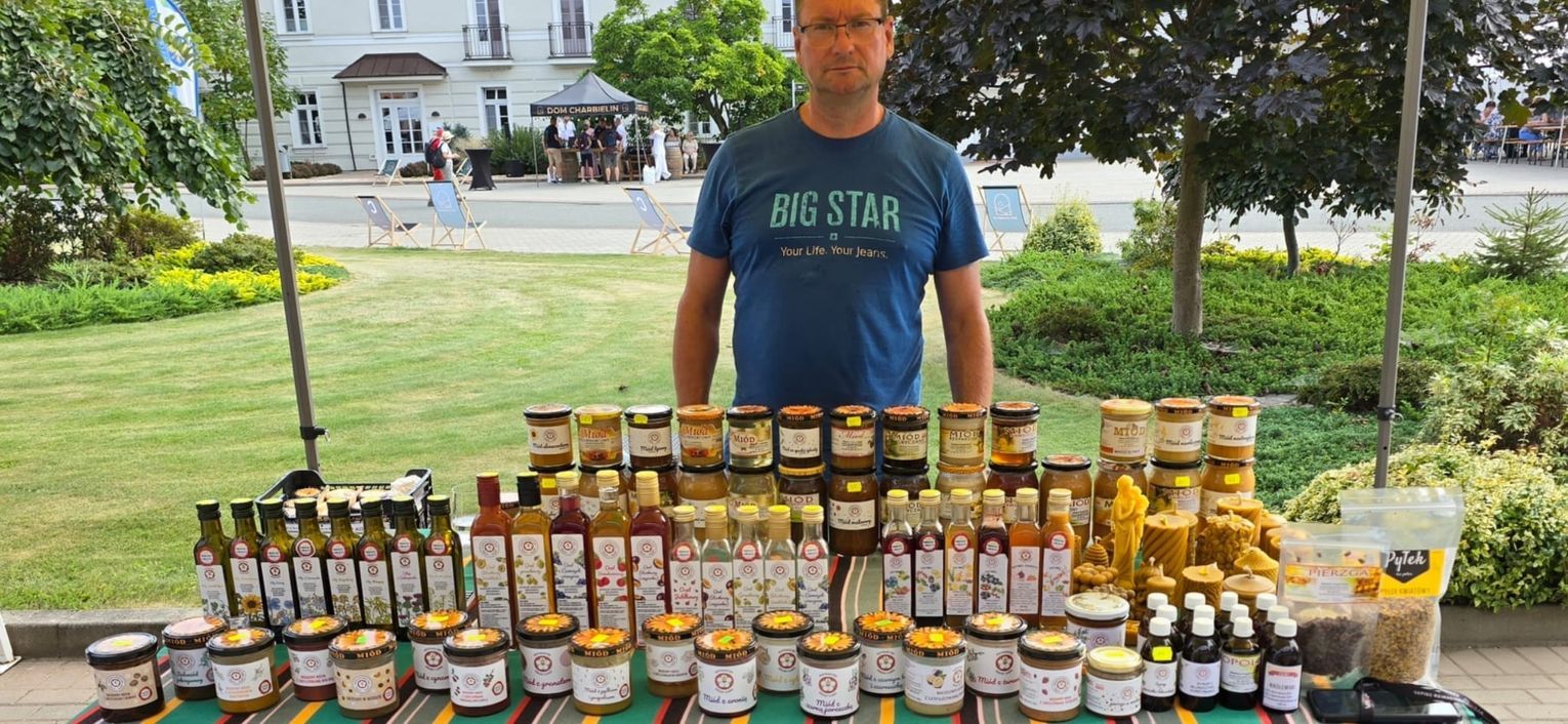 Na stoisku rodziny Fluder będzie można kupić m.in. oleje tłoczone na zimno – rzepakowy z lnianki, konopny, słonecznikowy, dyniowy, z czarnuszki czy ostropestu. Wszystkie są niefiltrowane i nierafinowane. W ofercie znajdą się również naturalne, „żywe” octy – jabłkowy, winogronowy, śliwkowy, malinowy, jeżynowy, z dzikiej róży, gruszkowy oraz bławatkowy – zawierające żywe kultury bakterii. Uzupełnieniem będą miody odmianowe i inne produkty pszczele: ramki z miodem prosto z ula, pyłek kwiatowy kiszony w miodzie, propolis oraz świece z wosku pszczelego. Charakterystyczna biała róża na etykietach, będąca symbolem rodzinnego herbu, nawiązuje do powrotu do natury i tradycji.