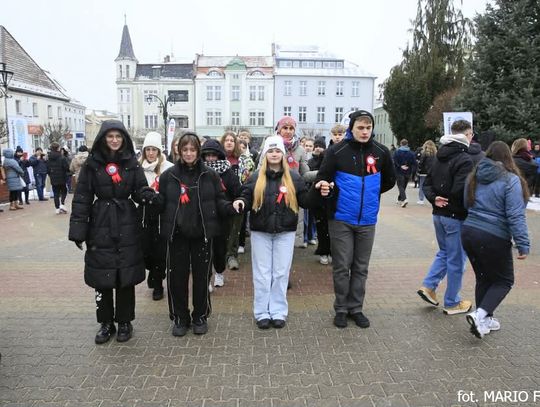 Maturzyści z Krapkowic i Zdzieszowic tańczący poloneza na Rynku w Krapkowicach podczas wydarzenia przed maturą 2026. Polonez Tygodnik Krapkowicki Powiat Krapkowicki
