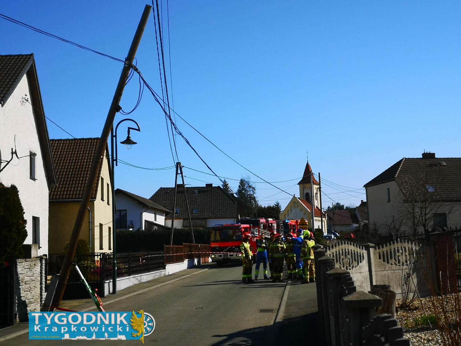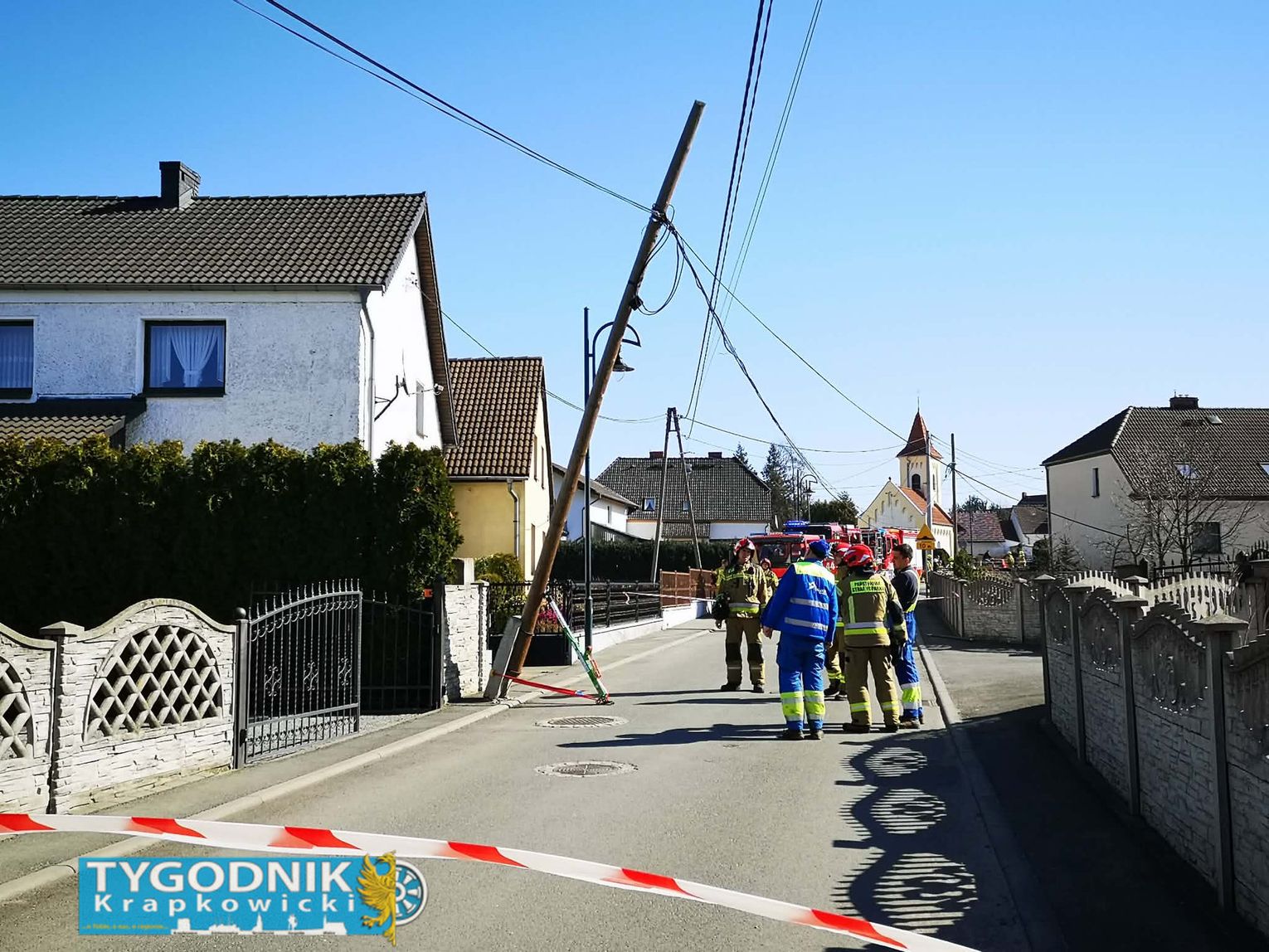 Słup został zabezpieczony, a służby prowadziły działania, aby usunąć skutki zdarzenia i sprawdzić stan instalacji.