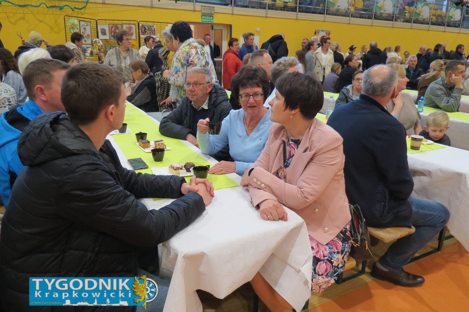 Jarmark był też okazją do wspólnego świętowania. Rodziny, przyjaciele i sąsiedzi spędzali czas przy stołach, degustując potrawy i składając sobie wielkanocne życzenia.