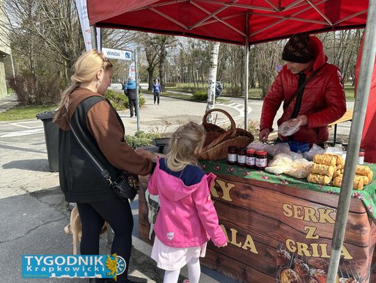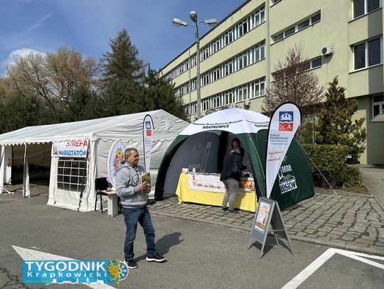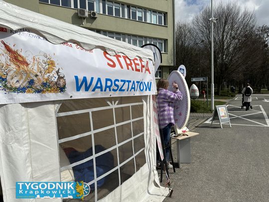 Na parkingu przy starostwie w Krapkowicach trwa Środa Żurowa i Kiermasz Wielkanocny. Odwiedzający spacerują między stoiskami, a część mieszkańców korzysta z przygotowanych warsztatów.