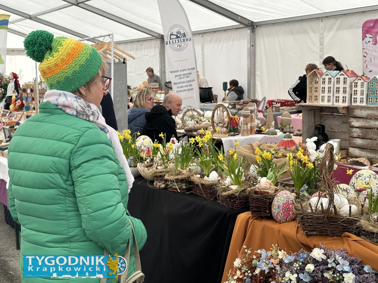 Na stoiskach można znaleźć różnorodne produkty związane ze zbliżającymi się świętami wielkanocnymi. Wśród nich są m.in.: